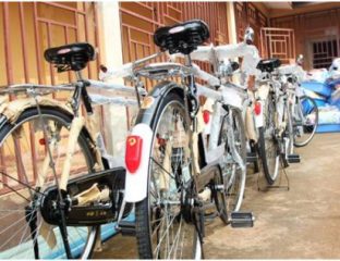 The World Vision donated fourteen motorbikes and eight bicycles to the Bo District Medical Health Team and baby friendly packs to pregnant women living within their Area Development Programme in Tikonko. (Photo: The bicycles and