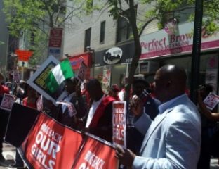 Dozens of BringBackOurGirls NYC members together with community leaders and concerned citizens staged a peaceful protest in New York on Monday to petition the U.N. Security Council, U.S. Secretary of State John Kerry, the Nigerian