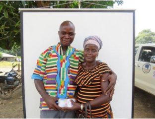 Mammie Kallon beams with smile as she appends her inked thumb to the micro-loan document before receiving the sum of Two Million Five Hundred Thousand Leones. Together with her husband, who also signed as guarantor,