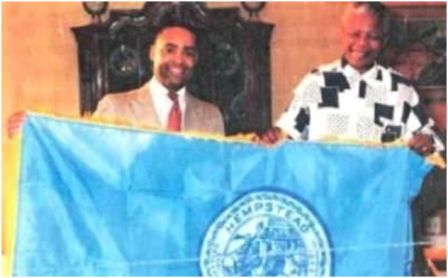 Malabo, Equatorial Guinea and New York City, New York – Hurricane Sandy, the devastating storm that cause havoc in the Northeast came with a silver lining. In the wake of this catastrophe, which some equated to global warming saw a nation coming together across racial, political, social and religious differences. (Photo: H.E. Anatolio Ndong Mba, Ambassador for Equatorial Guinea to the United Nations and Victor Mooney pay respect to the ancestors at the African Burial Ground in New York City.)