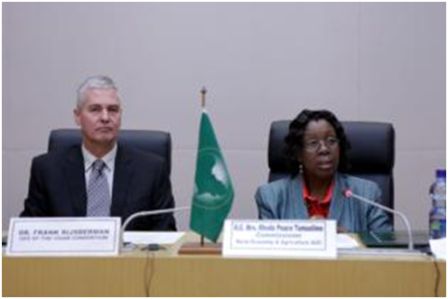 Addis Ababa, Ethiopia, 15 January 2013 – In an event that highlights continued progress towards African agricultural sustainability, African Union Commission (AUC) Commissioner for Rural Economy and Agriculture, H.E. Rhoda Peace Tumusiime and Chief Executive Officer of the Consortium of International Agricultural Research Centers (CGIAR Consortium), Dr. Frank Rijsberman today signed a Memorandum of Understanding (MoU) on behalf of the two organizations.