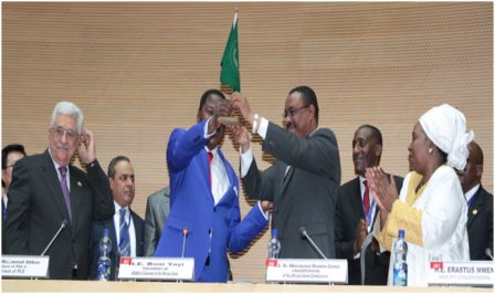 Before passing on the baton to the new Chairperson of the Union, Mr. Hailemariam Dessalegn, Prime Minister of the Federal Democratic Republic of Ethiopia, the outgoing Chairperson of the Union, Dr. Boni Yayi, who is also President of the Republic of Benin, in his speech, urged the Assembly to respect the AU institutions and its constitutive Act. He stressed on the importance of regional integration and political unity, as well as re-enforcement of the Regional Economic Communities (RECs) . President Yayi called on Africans to invest and encourage business ventures in the continent.
