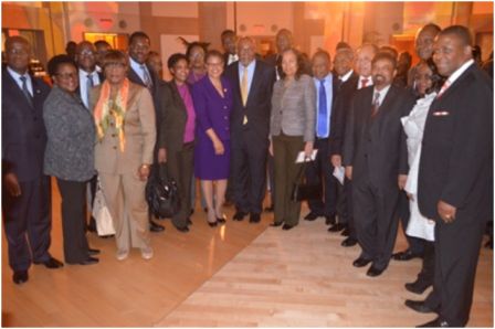 At a farewell reception held in honor of outgoing United States of America Assistant Secretary of State for the Bureau of African Affairs, Ambassador Johnnie Carson at the Ronald Reagan International Centre in Washington DC on the 26th February, Carson remarked “Africa has done marvelously over the past twelve and eighteen months in the area of deepening of democracy and strengthening of democratic institutions. (Photo: group photo of Ambassador Johnnie Carson and Congresswoman Bass (purple) and some distinguish guests)