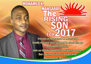 I recommend to you the rising star of the APC, Mr. Mohamed K Mansaray for President 2018.