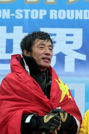 From Nov. 18, 2012 to April 5, 2013, the 48-year-old completed a solo around-the-world odyssey aboard a Class 40 yacht. His 138-day journey started in Qingdao, a coastal city in northeast China’s Shandong Province. From there, he sailed across the Pacific Ocean and down to Cape Horn off the coast of South America before making his way into the Atlantic Ocean and back to Qingdao. His 21,600-nautical mile (40,000-kilometer) journey took him through the most dangerous waters on the planet and set a world record for solo non-stop circumnavigation in a Class 40 yacht.