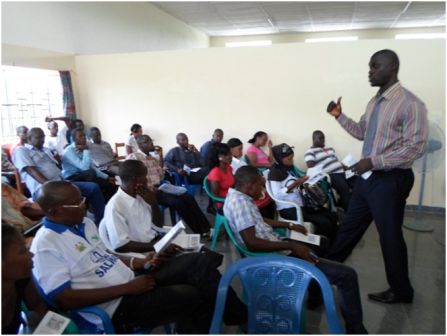 Over forty Civil Society Organizations have benefitted from a one day training organized on Wednesday 16th October 2013 at Serra Leone Library Board Headquarters in Makeni by the Sierra Leone Network on the Right to Food (SiLNoRF) in collaboration with NAMATI on how CSOs should undertake land rights negotiation advocacy with multinational companies involved in large land lease in the country. Sonkita Conteh delivering his lectures to participants