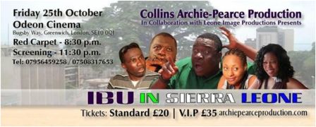 Collins Archie-Pearce Productions Presents in Association with Leone Image Production, ”IBU IN SIERRA LEONE,” on Friday, October 25th, at the Odeon Cinema in Greenwich, UK.