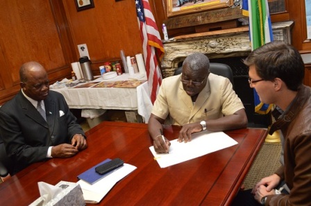 Sierra Leone’s Ambassador accredited to the United States of America, His Excellency Bockari Kortu Stevens on behalf of the Government of Sierra Leone, signed the recommendation of the statutory committee today Thursday October 31st at the Chancery at 1701 19th Street, NW, Washington DC USA.