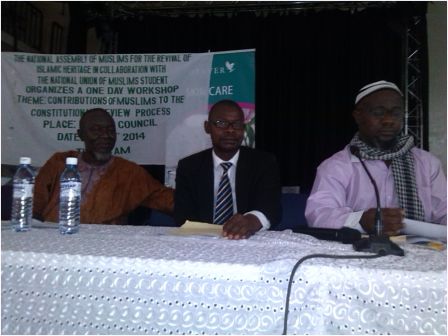 The National Assembly for the Revival of Islamic Heritage in Collaboration with the National Union of Muslim Students has ended a one day workshop for Muslim Stakeholders on theme “Contributions of Muslims in the Constitutional Review Process” on Sunday 4th May, 2014 at the British Council Auditorium Tower Hill.