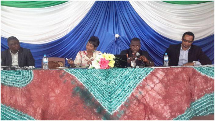 The Southern Regional Office of the Anti-Corruption Commission (ACC) and the National Anti-Corruption Strategy (NACS) Secretariat on Wednesday 15th July 2015 at the Bo District Council Hall, Sewa Road, Bo finalized one day assessment engagement with the Integrity Management Committee members drawn from Ministries, Departments and Agencies (MDAs) in the Southern Region. This assessment engagement with the IMCs by the Implementation Committee attracted one hundred and twenty (120) members from thirty eight (38) MDAs. (Photo: Right to left: Samuel Marah, Hon. Claude Kamanda, Mrs. Lavina Bandua and Patrick George)