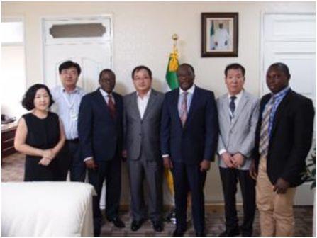 As part of the ongoing efforts of the Sierra Leone Embassy in Korea to showcase and promote Sierra Leone to Korean Companies and potential investors in the aftermath of the Ebola scourge, His Excellency Ambassador Omrie Michael Golley, Sierra Leone’s Ambassador to Korea, today August 20th 2015, received the Chairman and CEO of Younghaw Development Industries Limited Mr. Kim Hun Ko. The Chairman was accompanied by Director Chul Eui Han and officials representing other divisions of this Korean Corporation. (Group Photo featuring H.E. Ambassador Golley and Chairman Ko together with officials of the Sierra Leone mission in Seoul and Younghaw Development Industry Limited)