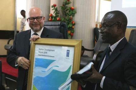 Freetown, 10 March 2016 – Minister of State for Finance and Economic Development, Alhaji F.B.L Mansaray has launched the 2015 Global Human Development Report (HDR) titled Work for Human Development in Freetown, Thursday March 10. The report shows that Sierra Leone continues to make steady progress in human development despite the recent devastating Ebola epidemic in 2014-2015, but that deep poverty and various forms of inequality in Sierra Leone are among the highest in Africa.