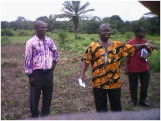 After serving 39 years in the Ministry of Social Welfare Gender and Children’s Affairs (MSGWCA) as Acting Kenema district’s Principal Social Development Officer (PSDO), James Bampia Bundu Snr. has finally decided to go into Agric business, as part of his move to ensure sustainable livelihood for women and young people in rural communities. (Photo: J B Bundu flanked by the regional Agriculture Officer)