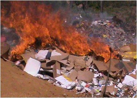 Makeni, May 20, 016 (MOHS) – The Pharmacy Board of Sierra Leone on Thursday May 19, 2016 destroyed counterfeit, expired, unregistered, deteriorated, and classes A and B drugs worth Le 185,000,000 at the Makama dumping site in Makeni, northern Sierra Leone. Photo depicting destruction of the drugs