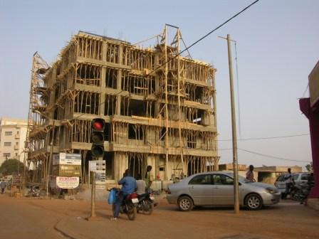 “Burkina is proud,” declare the billboards along the capital Ouagadougou’s major thoroughfares. When they were first put up in December 2015 to mark the election of a new government, many citizens were not only proud, but also hopeful that they could at last start building the “new Burkina Faso” they had long imagined. (Photo: A building under construction in Ouagadougou Photo Ernest Harsch)