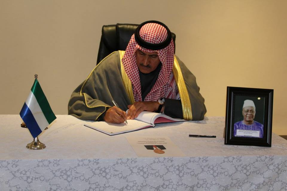 Following the passing away of H.E. Ambassador Ibrahim Bakarr Kamara on Wednesday 8th February 2017, the Sierra Leone Mission in Kuwait opened a Book of Condolence at the Chancery from Monday 13th to Wednesday 15th February 2017. (Deputy Kuwait FM signing book of condolence)
