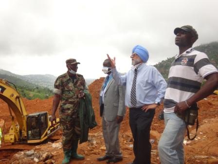 Mr. Brar and Dr. Ibrahim were briefed by an RSLAF Captain who is coordinating the recovery efforts. The officer said they lack heavy moving machines to dislodge the giant boulders so that they could have access to the hundreds of bodies believed to be buried under the mud. What they have are diggers which could not lift the massive rocks that are scattered all over the area.