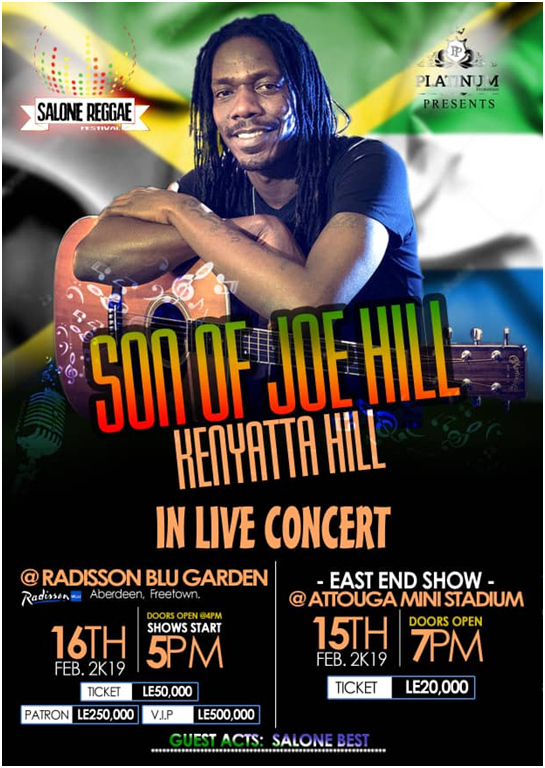 He concluded by calling on Sierra Leoneans to come out on the stipulated days in numbers to listen to conscious vibes from late son of World Superstar, Kenyatta Hill.
