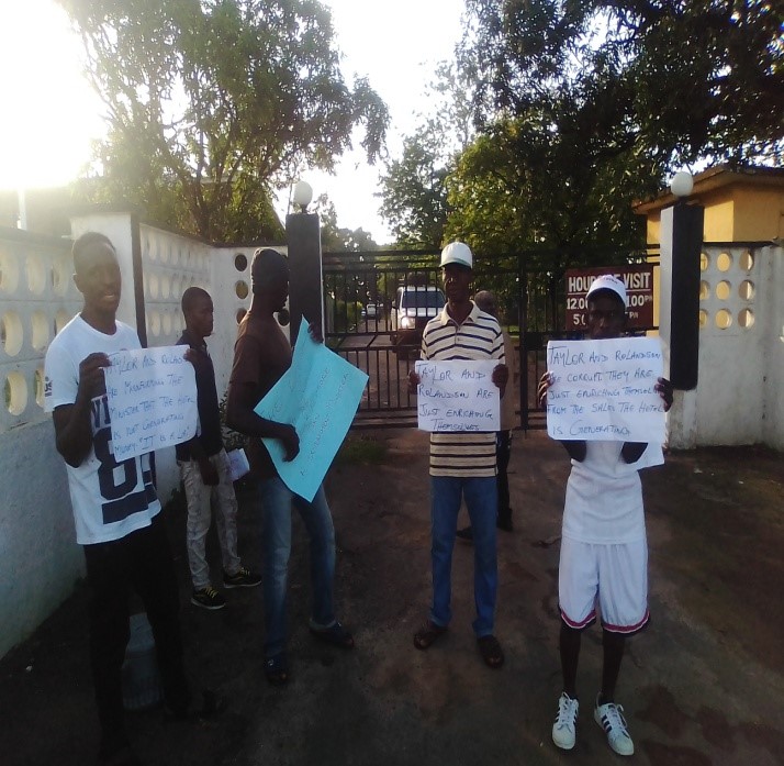 The peaceful demonstration was held on the 12th June 2019 with placards in front of the management of the hotel at the Airport Ferry Road, Lungi.