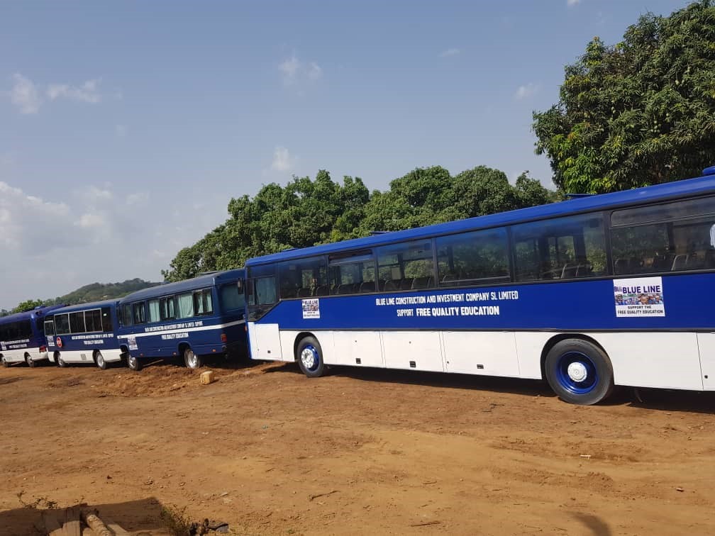 Blue Line Construction and Investment Company Sierra Leone Limited, a Sierra Leonean based Construction Company that specializes in road construction, buildings of all kinds and other engineering works has in collaboration with one of Sierra Leone’s finest philanthropists, Dr. Mohamed Tunde Macarthy popularly known as TUMAC, the CEO of TUMAC Group of Companies, provided forty buses for school going pupils across Sierra Leone as part of their support to His Excellency Brig. Rtd Julius Maada Bio’s Free and Quality Education drive.