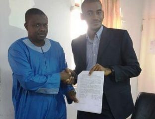 Africa Young Voices (AYV) has inked a deal with the media production company SaloneJamboree for content productions. (l-r Anthony Navo Jr of AYV and Murtala Mohamed Kamara SaloneJamboree) The